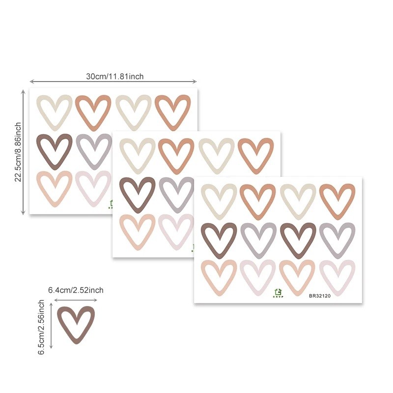Dekorační samolepky ve tvaru srdce představují snadný způsob, jak dodat prostoru osobitý styl, romantickou atmosféru nebo jemný dekorativní prvek. Tato sada obsahuje celkem 36 samolepek o velikosti 6,5 x 5,7 cm, díky čemuž jsou vhodné pro menší i větší dekorace. Samolepky jsou uspořádány do 3 samostatných listů, z nichž každý obsahuje 12 kusů, což výrazně usnadňuje manipulaci a aplikaci. Jsou vyrobeny z kvalitního PVC, které je odolné, snadno se čistí a dobře přilne k hladkým povrchům. Motiv srdce je univerzální a využitelný pro celou řadu příležitostí – od výzdoby dárků až po kreativní tvoření, svatební dekorace, valentýnské projekty nebo ozdobu osobních doplňků.