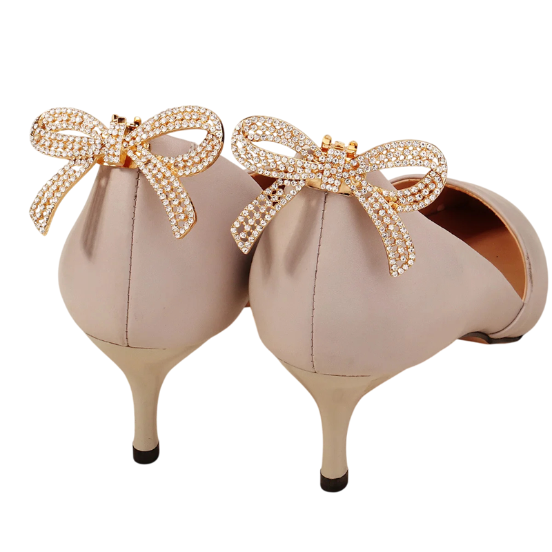 Dekorativní spona na lodičky ve tvaru mašličky představuje jemný, ale výrazný detail, který dokáže oživit vzhled obuvi. Díky kombinaci tvaru mašle a lesklých kamínků působí doplněk dekorativně a přitahuje pozornost bez nutnosti dalších úprav bot.