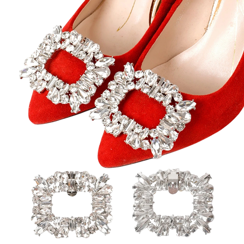 Dekorativní spona na lodičky výrazný kamínkový rám 6 cm kov s připínacím klipem ozdoba na boty elegantní doplněk pro úpravu obuvi