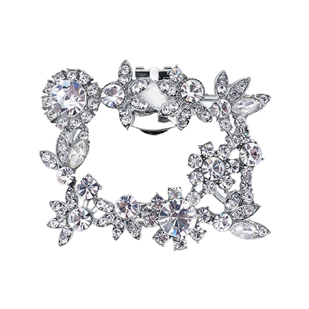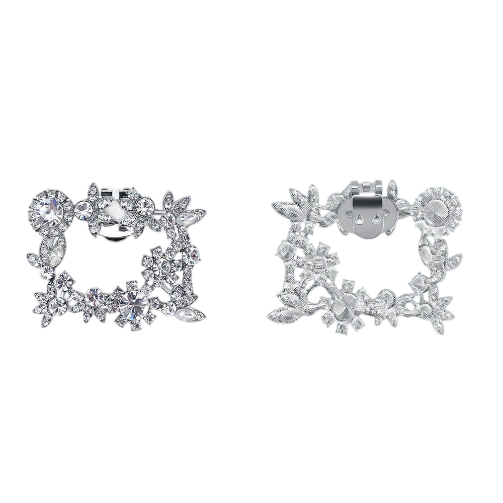 Dekorativní spona na lodičky zdobený obdélník s kamínky 6x5 cm kov stříbrná připínací klip ozdoba na boty elegantní doplněk