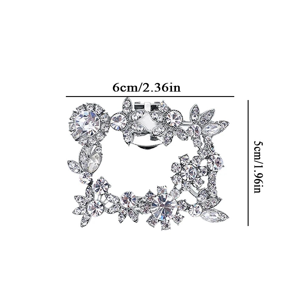Dekorativní spona na lodičky ve tvaru obdélníku představuje stylový doplněk, který snadno oživí vzhled obuvi. Díky bohatému zdobení kamínky působí výrazně a hodí se především k elegantním outfitům. Tento typ ozdoby je ideální pro lodičky, ale lze jej využít i na další druhy obuvi.