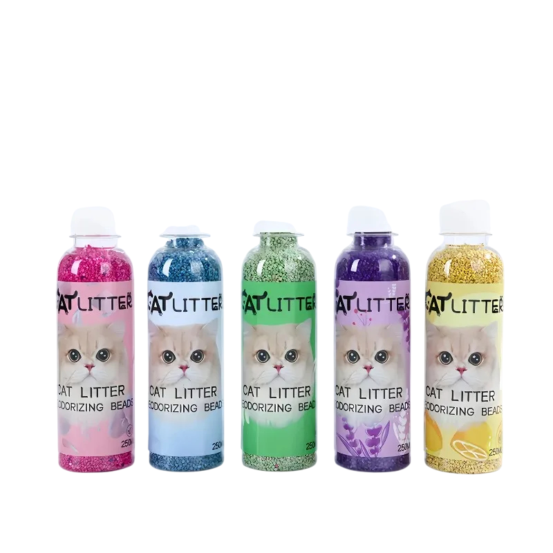 Deodorační perličky do kočičího steliva proti zápachu 250 ml absorpční granule balení výška 17 cm pro kočičí toaletu