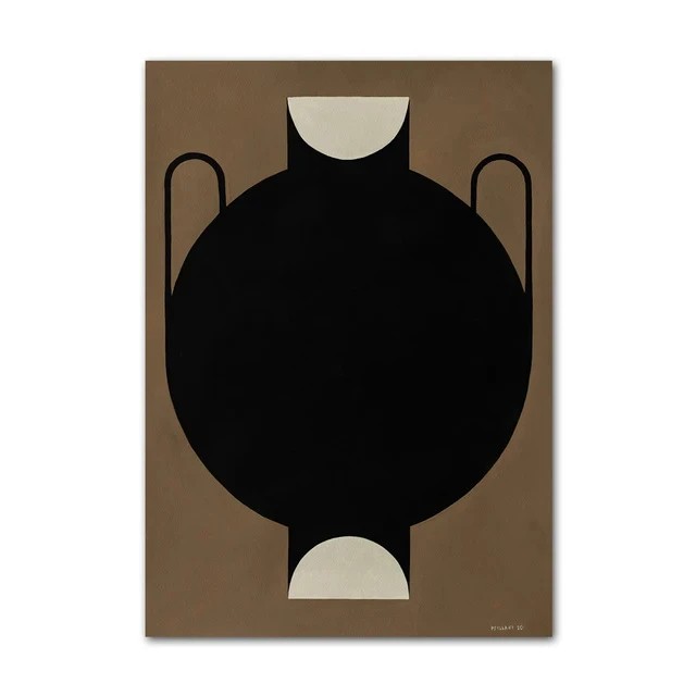 Designový plakát na zeď černá váza minimalistická kompozice 50 × 75 cm tisk na plátno hnědo béžové tóny dekorace interiéru bez rámu