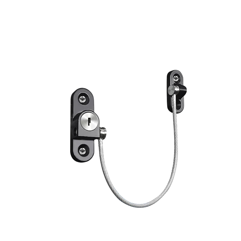 Na jedné straně se nachází uzamykací mechanismus, který zajišťuje spojení lankového systému. Díky tomu lze snadno regulovat otevření dveří nebo skříně bez nutnosti složité manipulace. Pojistka je vhodná do domácností, kde je potřeba zvýšit bezpečnost při používání nábytku.