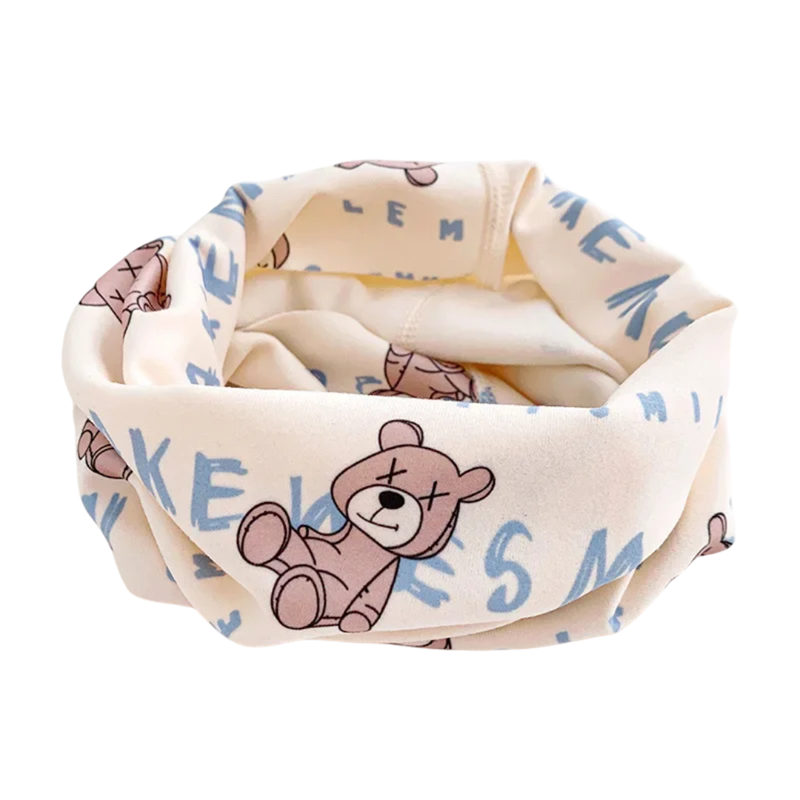 Dětská kruhová šála 30 x 22 cm Bavlněná přes hlavu Béžová s motivem medvídků Měkký pohodlný doplněk pro chlapce i dívky Teplá elastická šála pro každodenní nošení