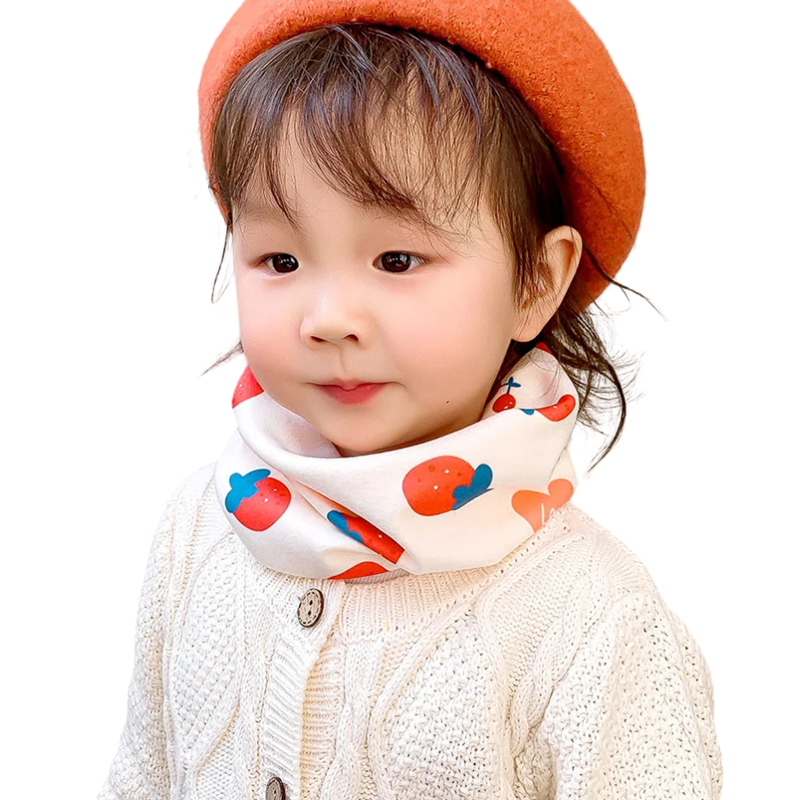 Měkká dětská kruhová šála z bavlny v rozměru 30 x 22 cm s veselým ovocným motivem poskytuje pohodlí, teplo a snadné oblékání. Vhodná pro chlapce i dívky. Celý popis