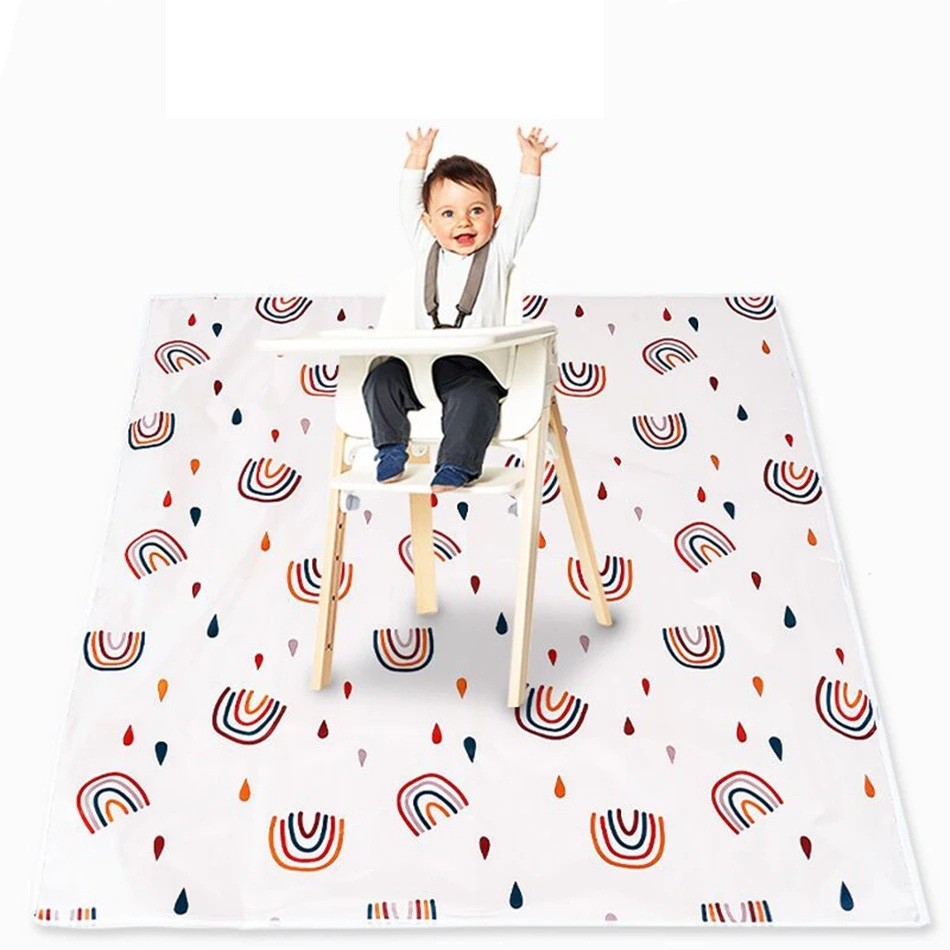 Tato barevná dětská podložka s motivem duhy ochrání podlahu před nečistotami, vodou a barvami, zatímco interiér oživí veselým motivem. Je ideální pro použití doma i venku – pod židličku, do herního koutku nebo k tvoření.