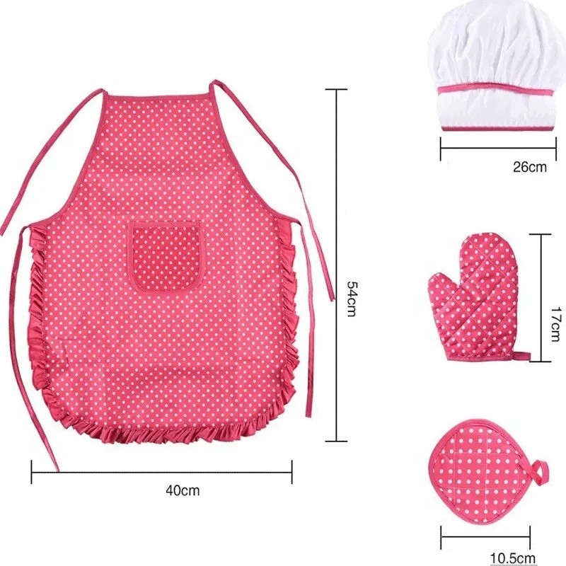 Tato krásná kuchařská sada je dokonalým doplňkem pro dětské kuchyňky nebo domácí pečení s rodiči. Odolný bavlněný materiál zajišťuje dlouhou životnost a pohodlné nošení, zatímco barevné provedení a realistické doplňky podněcují dětskou fantazii. Děti se mohou učit základním kuchyňským dovednostem a přitom si užívat zábavu při hře.