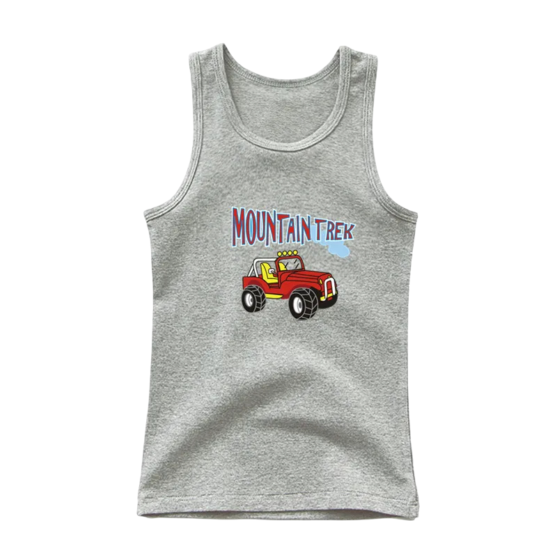Stylové dětské tílko z měkké bavlny s potiskem traktoru. Lehký a prodyšný top ideální pro léto, hraní i školku, dostupný v různých barvách. Celý popis