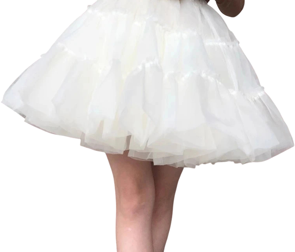 Dívčí bílá krátká spodnička Délka 50 cm Obvod pasu 60–100 cm Tylová podsukně pod šaty Sukně pro slavnostní a taneční šaty