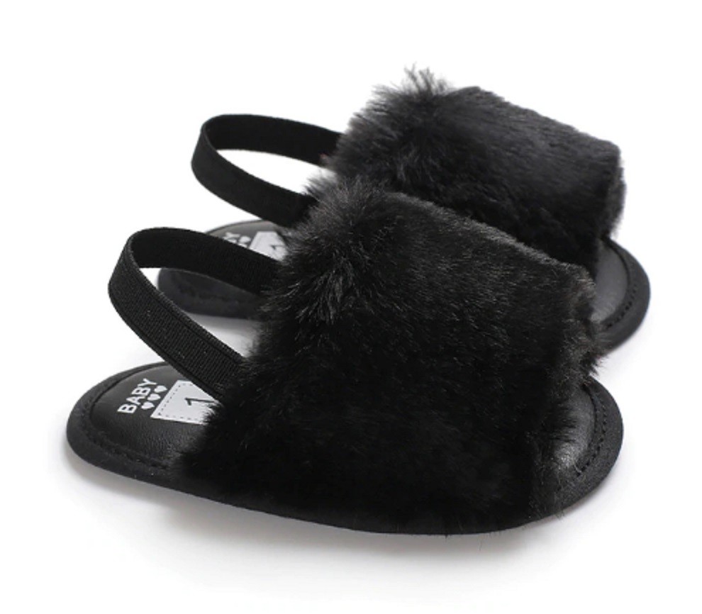 Dívčí chlupaté pantofle s páskem okolo paty jsou pohodlné!