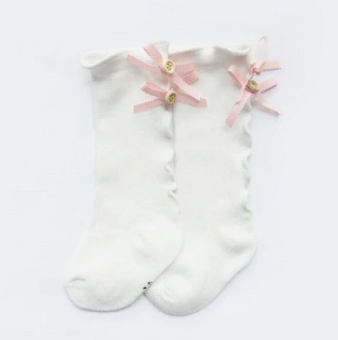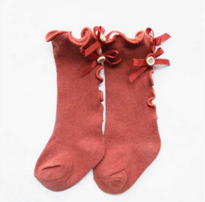 Podkolenky zdobí na zadní straně mašličky s knoflíky.