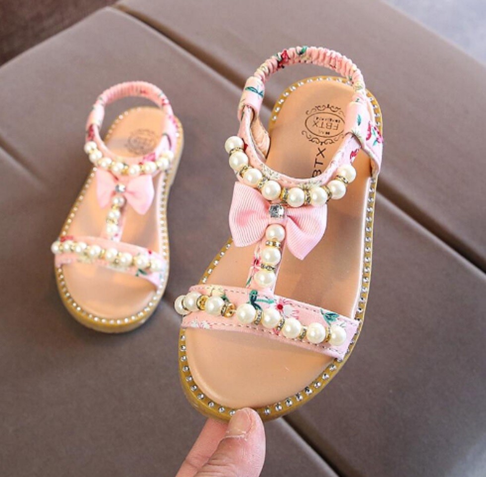 Dívčí sandály zdobené perlami budou skvělým doplňkem k šatičkám nebo sukýnce.