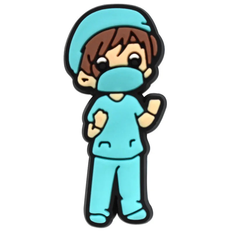 Doplněk na crocsy ve tvaru chirurga představuje jednoduchý způsob, jak ozvláštnit obuv a dodat jí osobitý vzhled. Tento malý dekorativní prvek zaujme především svým zdravotnickým motivem, který je jasně patrný na první pohled. Postavička chirurga je zpracována v modrém oblečení s rouškou, což odpovídá běžnému vzhledu zdravotníků.