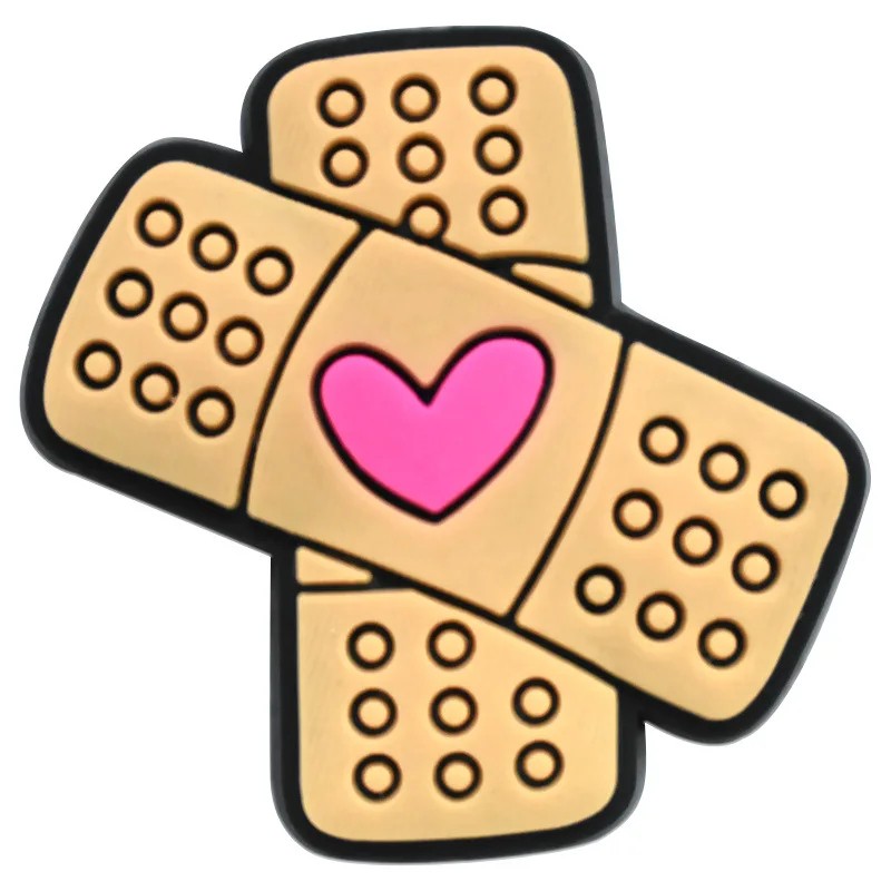 Dekorativní doplněk na crocsy ve tvaru náplasti představuje zajímavý prvek pro úpravu vzhledu obuvi. Motiv náplasti je doplněn o výrazné srdce uprostřed, což vytváří dobře rozpoznatelný zdravotnický design. Díky kompaktním rozměrům 2–3 cm se ozdoba snadno vejde do otvorů crocs bot a pevně drží na svém místě.