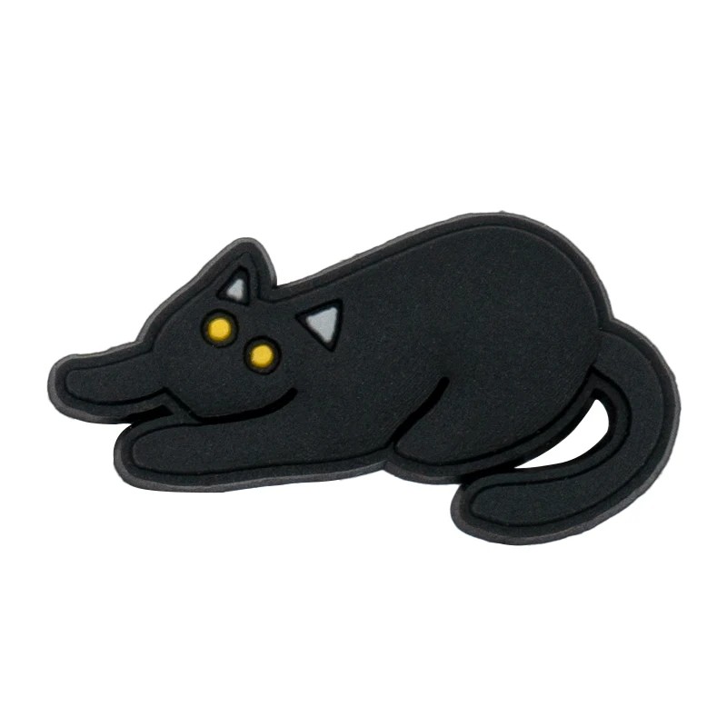 Doplněk na crocsy protahující se černá kočka PVC černá žlutá ozdoba na boty crocs dekorace obuvi s kočičím motivem