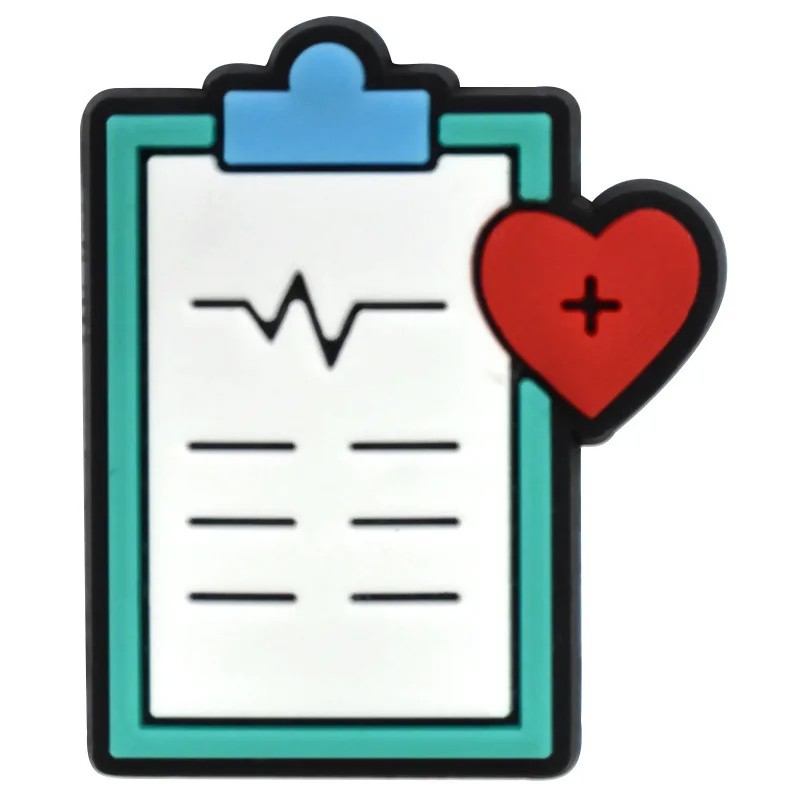 Dekorativní doplněk na crocsy ve tvaru zdravotnické karty na klipu představuje zajímavý prvek pro úpravu vzhledu obuvi. Motiv připomíná zdravotní záznam na podložce, doplněný o výrazné srdce s křížem, které podtrhuje zdravotnický charakter. Díky kompaktní velikosti 2–3 cm se ozdoba snadno připevní do otvorů crocs bot a drží pevně na svém místě.