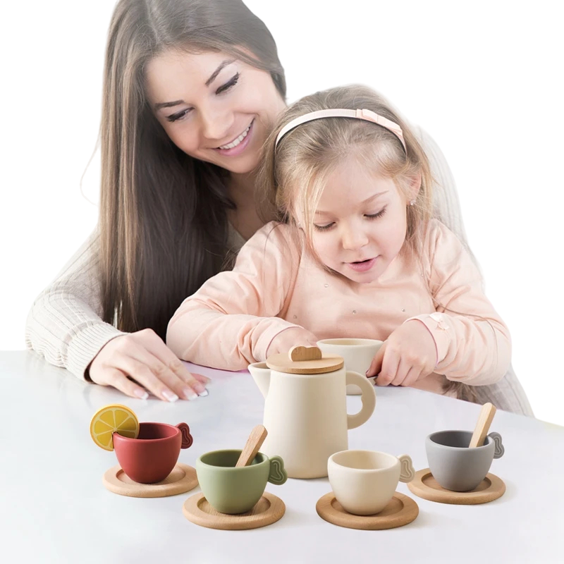 - Dřevěná čajová sada pro děti – realistický design pro zábavnou hru na čajový dýchánek