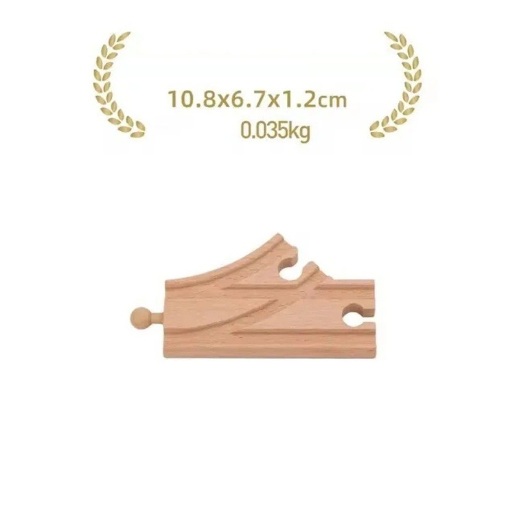 Dřevěná malá rozdvojená kolej 10,8 x 6,7 x 1,2 cm Rozdělení tratě do dvou směrů Praktický spojovací díl pro tvorbu větví dřevěné vlakové dráhy