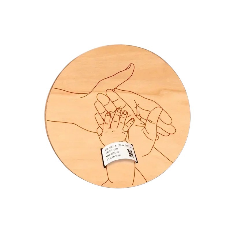 otvory pro vložení štítku s údaji o narození – například datum, čas, váhu nebo délku miminka. Díky tloušťce pouhých 0,2 cm je velmi lehká, dobře se s ní manipuluje a nepůsobí robustně. Jedná se o krásný dárkový předmět, který dokáže uchovat vzpomínky po mnoho let.
