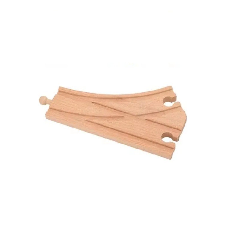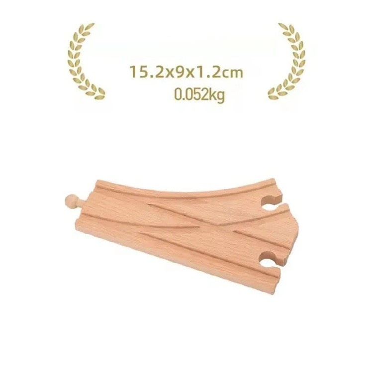 Dřevěná rozdvojená kolej 15,2 x 9 x 1,2 cm Rozdělení tratě do dvou směrů Velký spojovací díl pro tvorbu větví a rozšíření dřevěné vlakové dráhy