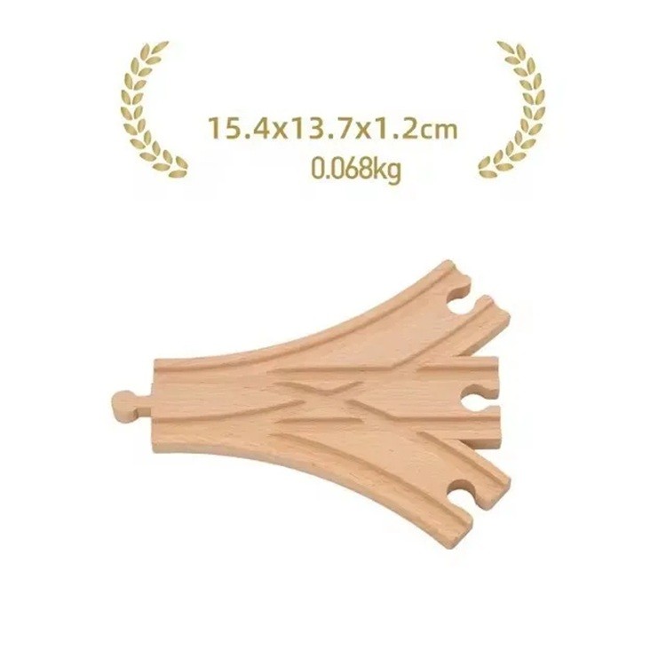 Dřevěná velká vidlicová kolej 15,4 x 13,7 x 1,2 cm Tři odbočky pro rozšíření tratě Vícesměrný díl pro tvorbu větví dřevěné vlakové dráhy