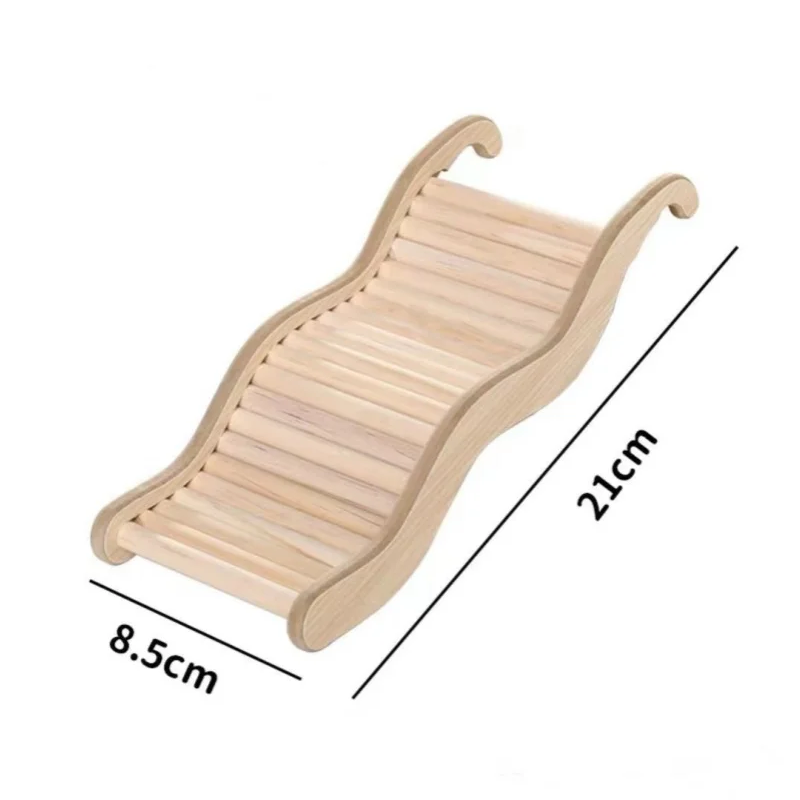 Povrch schodů je hladce opracovaný, aby zvířátkům nehrozilo poranění tlapek, a konstrukce je pevná a stabilní. Díky rozměrům 21 x 8,5 cm se snadno vejdou do menších i větších klecí. Přírodní dřevo je navíc bezpečné, bez chemických nátěrů a zápachů, takže se nemusíte obávat o zdraví svých mazlíčků.