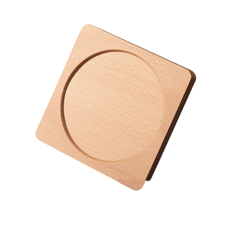 Dřevěný podtácek na hrnek čtvercový s kulatým vnitřkem 9 cm Tepelně odolná podložka na čaj a kávu dřevo prostírání na stůl