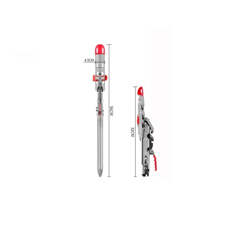 Celé provedení je navrženo jako skládací, což usnadňuje přenášení i skladování. Kompaktní rozměry ve složeném stavu umožňují snadné uložení do výbavy. Po rozložení poskytuje dostatečnou délku pro pevné zapíchnutí do země a stabilní oporu prutu. Konstrukce z nerezové oceli zajišťuje odolnost při běžném použití v terénu.