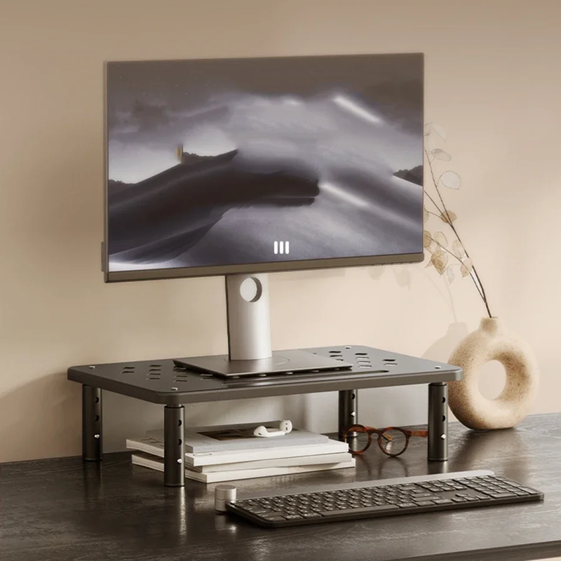 Tento držák na stolní monitor kombinuje funkčnost, styl a odolnost. Je ideálním doplňkem jak pro domácí kancelář, tak pro profesionální pracovní prostředí. Díky ergonomickému provedení snižuje únavu očí a zlepšuje pracovní komfort během dlouhých hodin u počítače. Kovová konstrukce dodává eleganci i stabilitu, zatímco prostor pod stojanem umožňuje udržet stůl přehledný. Pokud hledáte praktické řešení pro lepší organizaci a pohodlí, tento držák je ideální volbou.
