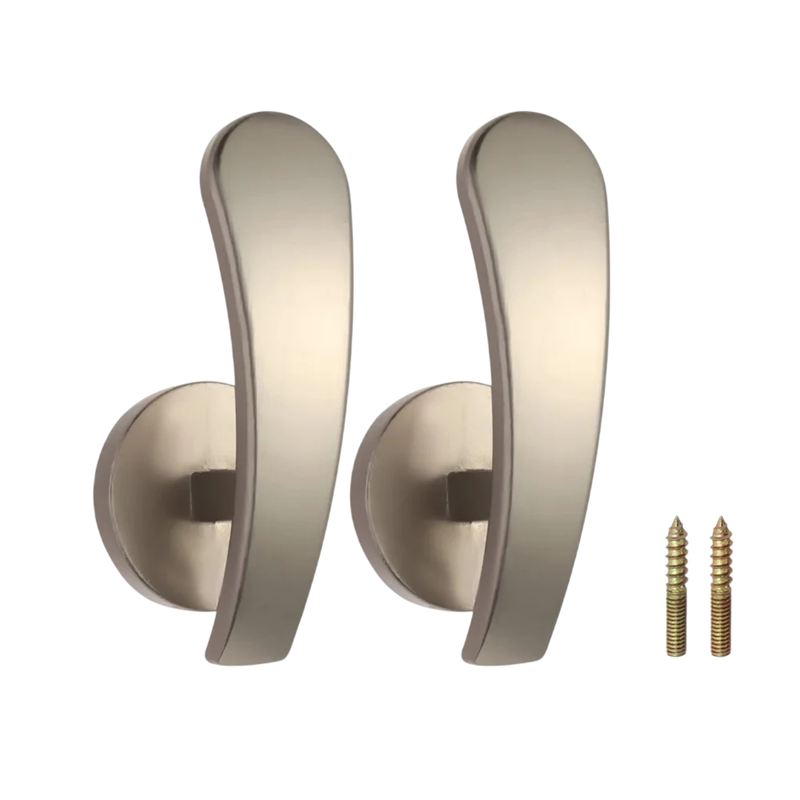 Součástí balení jsou montážní šrouby, které umožňují pevné uchycení ke stěně nebo jinému vhodnému podkladu. Držáky lze využít pro vedení úvazů, přidržení závěsů nebo dekorativní stažení textilie ke straně. Hladké zaoblené provedení působí elegantně a snadno se kombinuje s různými styly interiéru. Praktické použití oceníte v obývacím pokoji, ložnici i dalších místnostech.