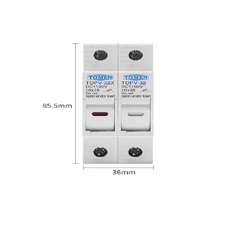 Dvoupólový držák pojistek DC 36 x 85,5 mm je spolehlivým řešením pro zajištění bezpečnosti moderních solárních instalací. Díky možnosti použití s různými hodnotami pojistek poskytuje flexibilitu při návrhu FV systémů a zajišťuje optimální ochranu stringů. Jeho pevná konstrukce a vysoké izolační vlastnosti jsou vhodné i pro náročné provozní prostředí. Snadná instalace na DIN lištu umožňuje rychlou integraci do rozvaděčů, zatímco kompatibilita s řadou TOMZN usnadňuje rozšíření stávajících sestav. Je ideální volbou pro profesionální použití v solárních fotovoltaických projektech různého rozsahu.