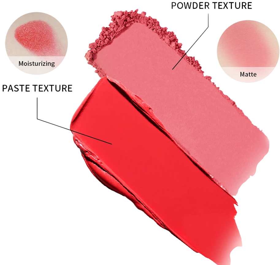 Díky modernímu složení nabízí dlouhotrvající výdrž bez rozmazání a zachovává přirozený vzhled po celý den. Pudrová část dodává jemně matný efekt, zatímco krémová složka pomáhá dodat pleti hebkost a lehké rozjasnění. Tvářenka se snadno vrství a umožňuje přesnou kontrolu intenzity barvy.