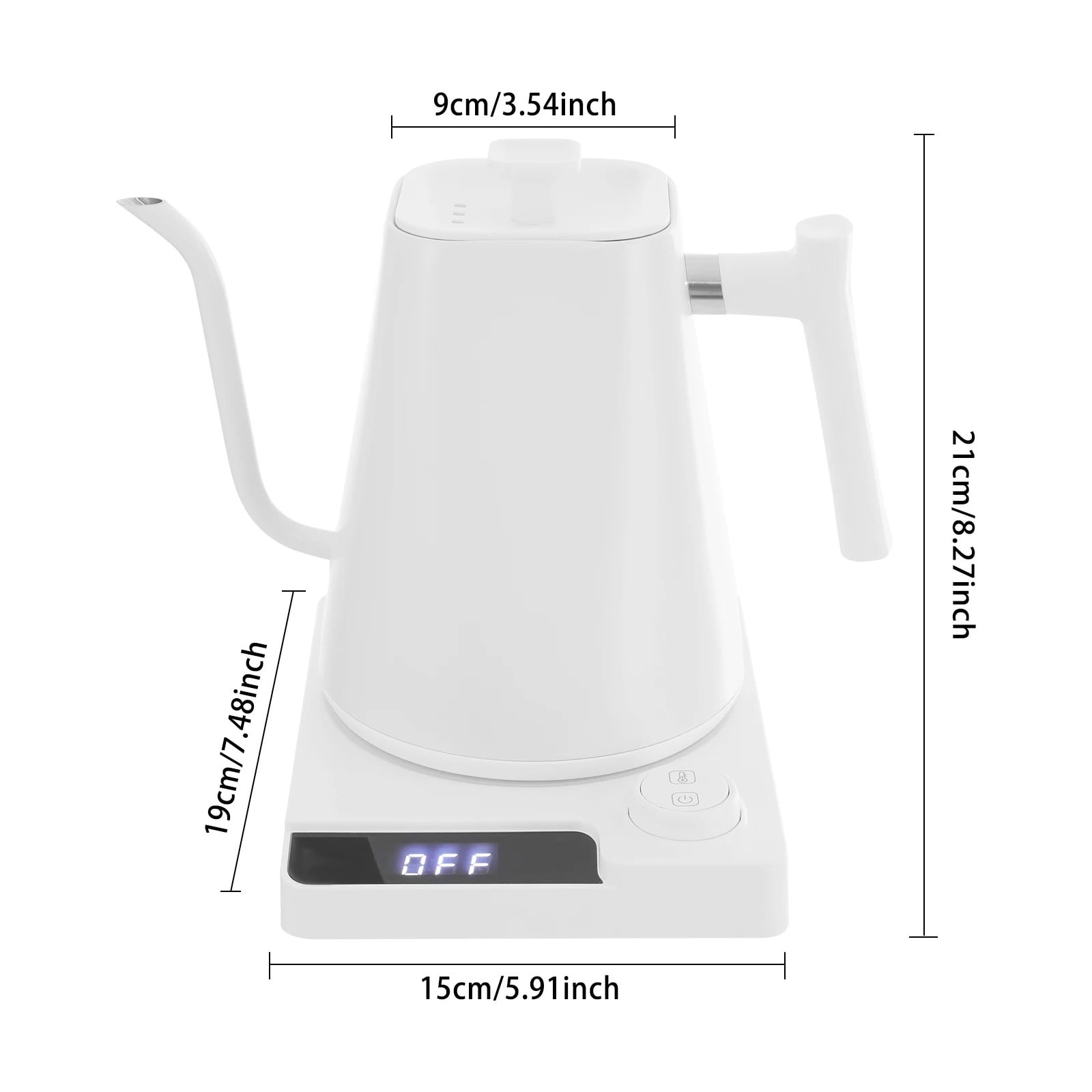 Tato chytrá elektrická konvice s husím krkem je navržena pro přesnou a pohodlnou přípravu kávy i čaje. Díky objemu 1 litr je vhodná jak pro jednotlivce, tak i pro přípravu více šálků najednou. Moderní konstrukce a praktické funkce umožňují snadnou kontrolu nad celým procesem ohřevu vody.