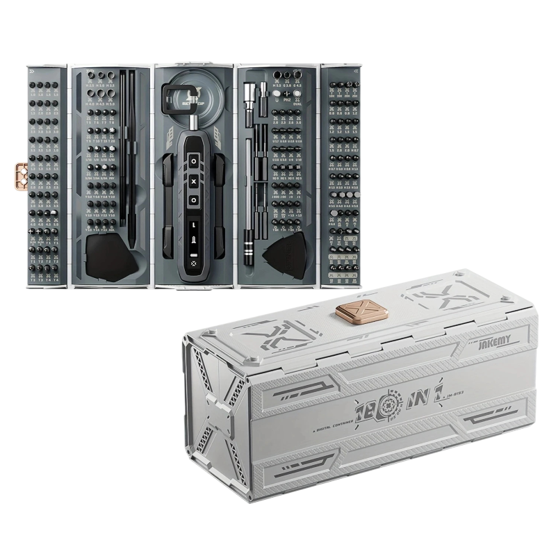 Elektrická sada šroubováků JAKEMY 180 v 1 nabízí praktické řešení pro přesné opravy drobné elektroniky. Díky kombinaci elektrického šroubováku a široké škály bitů je vhodná pro různé typy šroubů. Kompaktní organizér udržuje všechny nástroje přehledně uspořádané a snadno dostupné. Magnetické nástavce pomáhají při manipulaci s malými šroubky. Tato sada je vhodná pro každodenní opravy i detailní servisní práce.