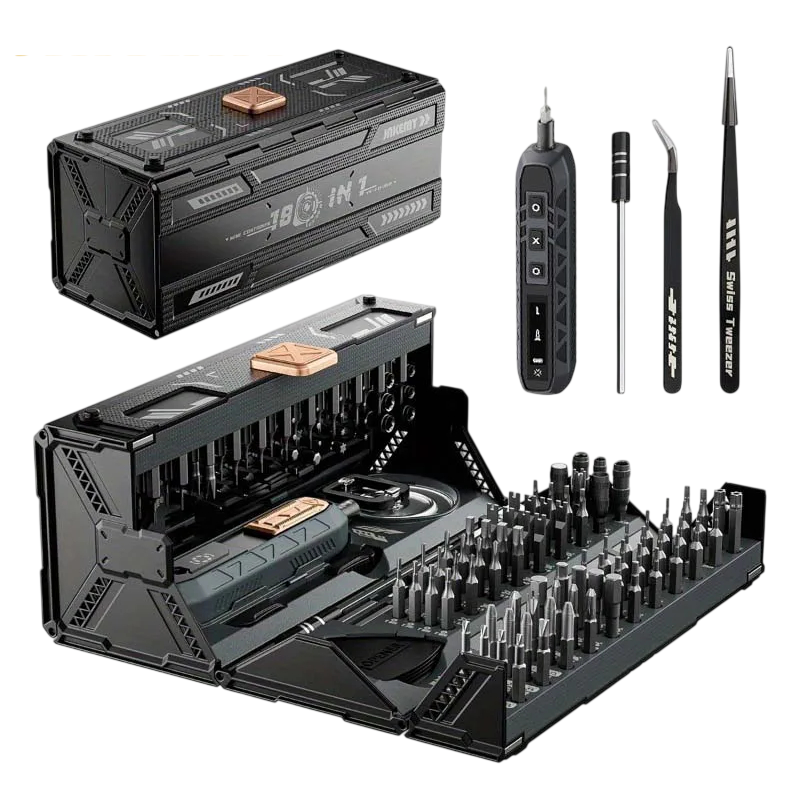 Komplexní sada s elektrickým šroubovákem a 180 bity pro přesné opravy. Ideální pro práci s elektronikou a drobnými zařízeními. Celý popis