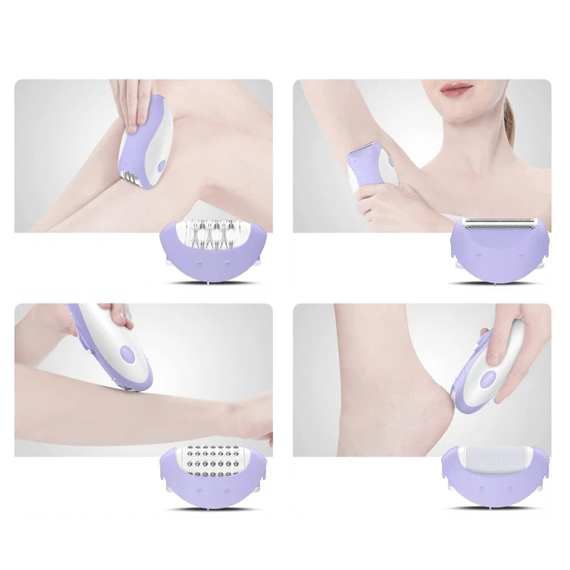 Elektrický depilační přístroj 6,5 x 11 cm Fialový dobíjecí epilátor se 4 nástavci Péče o pokožku a úprava chloupků USB napájení