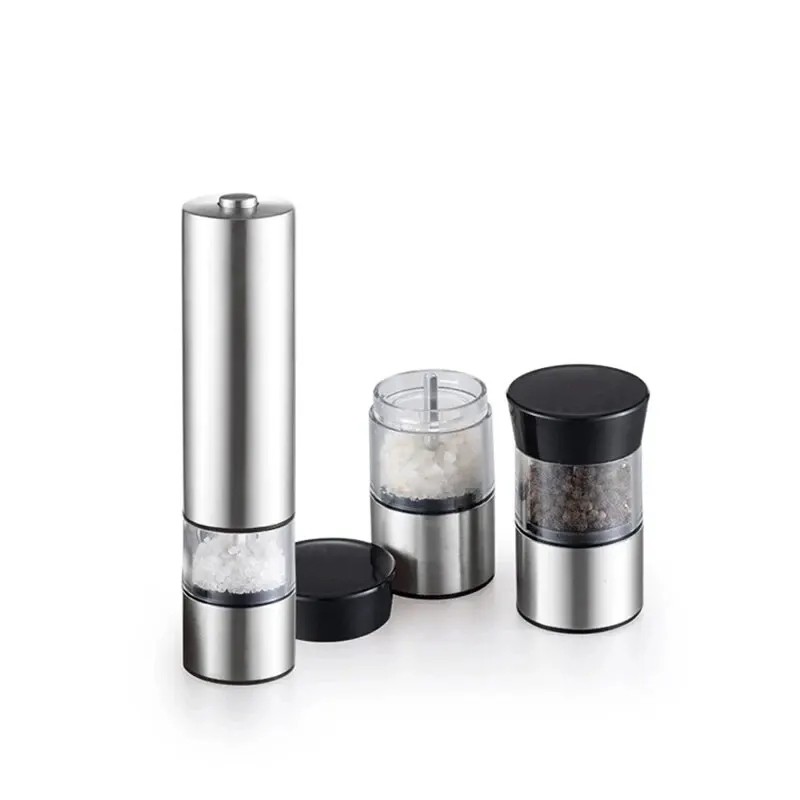 Tento elektrický mlýnek na pepř a sůl z nerezové oceli je praktickým pomocníkem pro každou moderní kuchyni i venkovní grilování. Díky elegantnímu provedení ve stříbrné barvě se stane nejen funkčním, ale i estetickým doplňkem vašeho stolu. Jeho rozměry 22,5 × 5,2 cm umožňují pohodlnou manipulaci a skladování. Díky nastavitelnému stupni hrubosti si snadno přizpůsobíte mletí koření podle receptu nebo osobních preferencí.