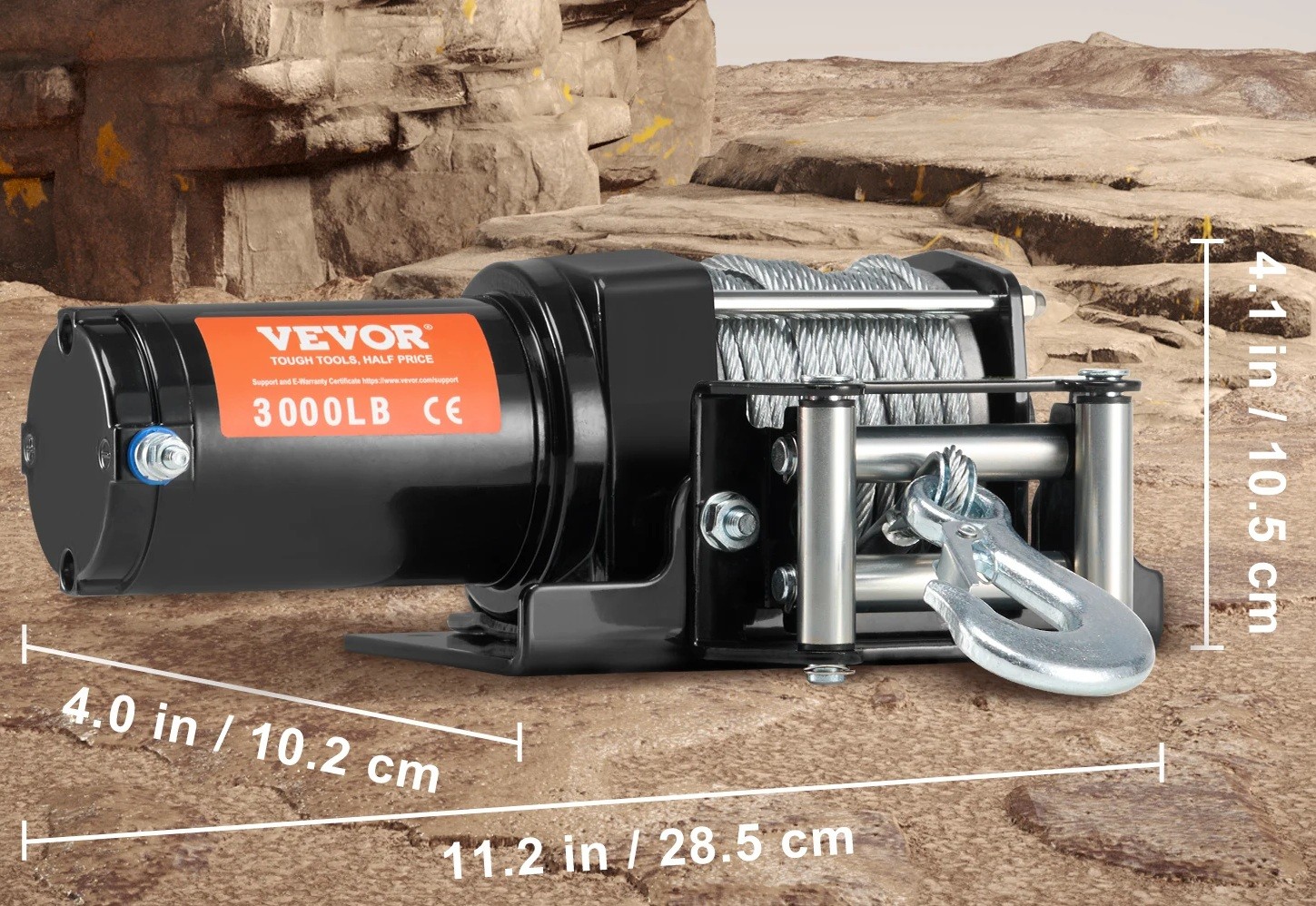 Elektrický naviják 12V s ocelovým lanem 1360 kg 28,5 × 10,5 × 10,2 cm černý kompaktní naviják pro auto a manipulaci s nákladem