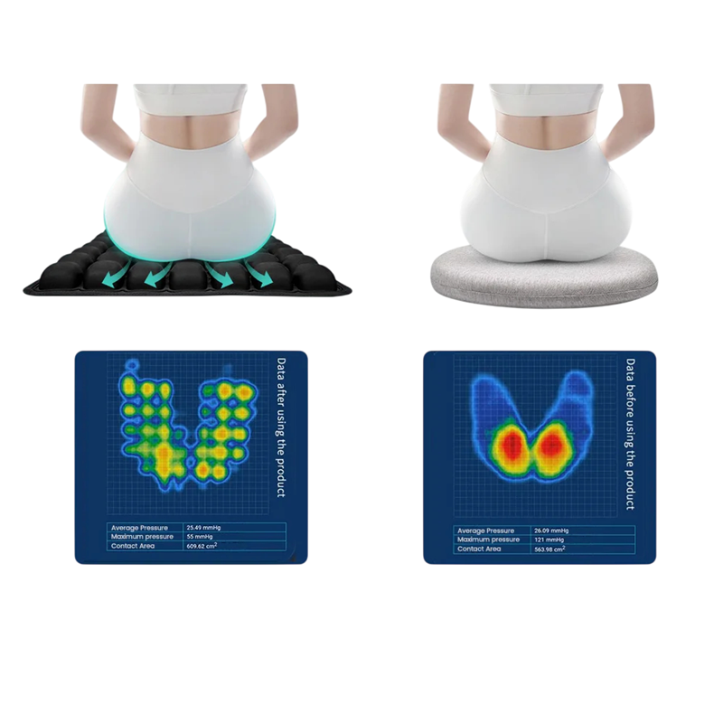 Ergonomický sedací polštář je navržen pro maximální pohodlí při dlouhodobém sezení doma, v kanceláři nebo na cestách. Díky speciální 3D konstrukci s více vzduchovými komorami pomáhá rovnoměrně rozložit tlak a přispívá k pohodlnějšímu sezení během celého dne. Ideální je pro práci u počítače, řízení nebo relaxaci.
