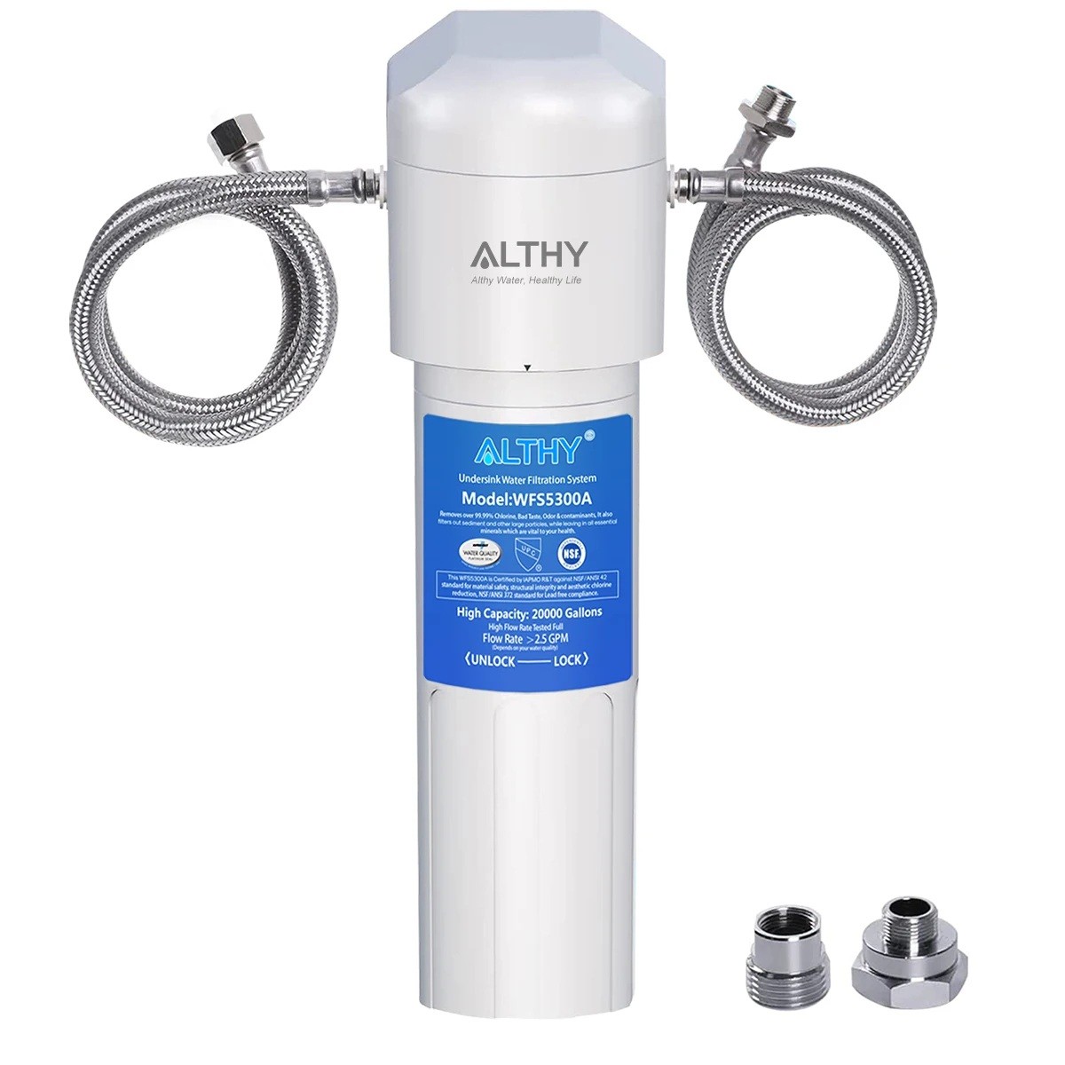 Zařízení nabízí vysoký průtok vody >2,5 GPM, což znamená, že filtr nezpomaluje běžné používání vody. Je vhodný jak pro pití, tak i pro vaření nebo další každodenní činnosti v kuchyni.