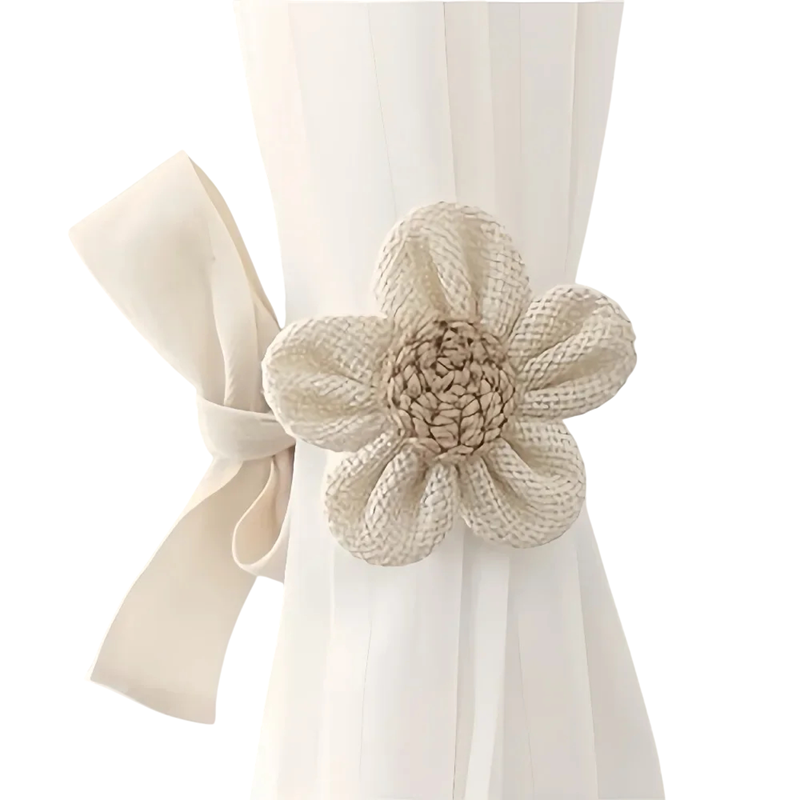 Elastický úvaz s květinovou ozdobou rychle sepne závěsy bez vrtání. Textilní provedení vhodné pro denní použití v každém interiéru. Celý popis