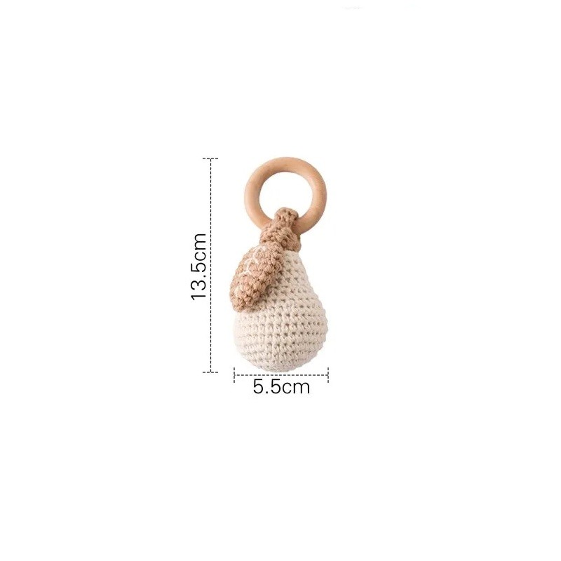 - Háčkovaný tvar hrušky z bavlny s jemným chrastivým zvukem.