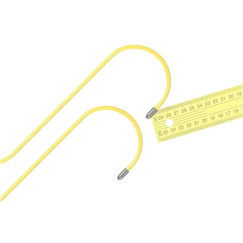 Univerzální hák na brzdové třmeny a nápravy automobilů, s gumovými koncovkami pro bezpečnou manipulaci, žlutá barva, ideální pro mechaniky. Celý popis