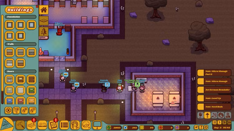 Nestačí se jen elegantně oblékat, váš kult musí fungovat jako dobře namazané hypno kolo. Nastavte svým kultistům rozvrhy, zvyšte jejich úroveň a spravujte systémy stravování a údržby. Přiřaďte úkoly svým kultistům na základě systému priorit, kdo řekl, že mikromanagement nefunguje?!