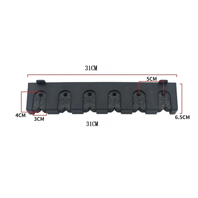 Horizontální nástěnný držák na rybářské pruty 6 pozic 31 × 6,5 cm pěnové vložky černý stojan pro organizaci prutů