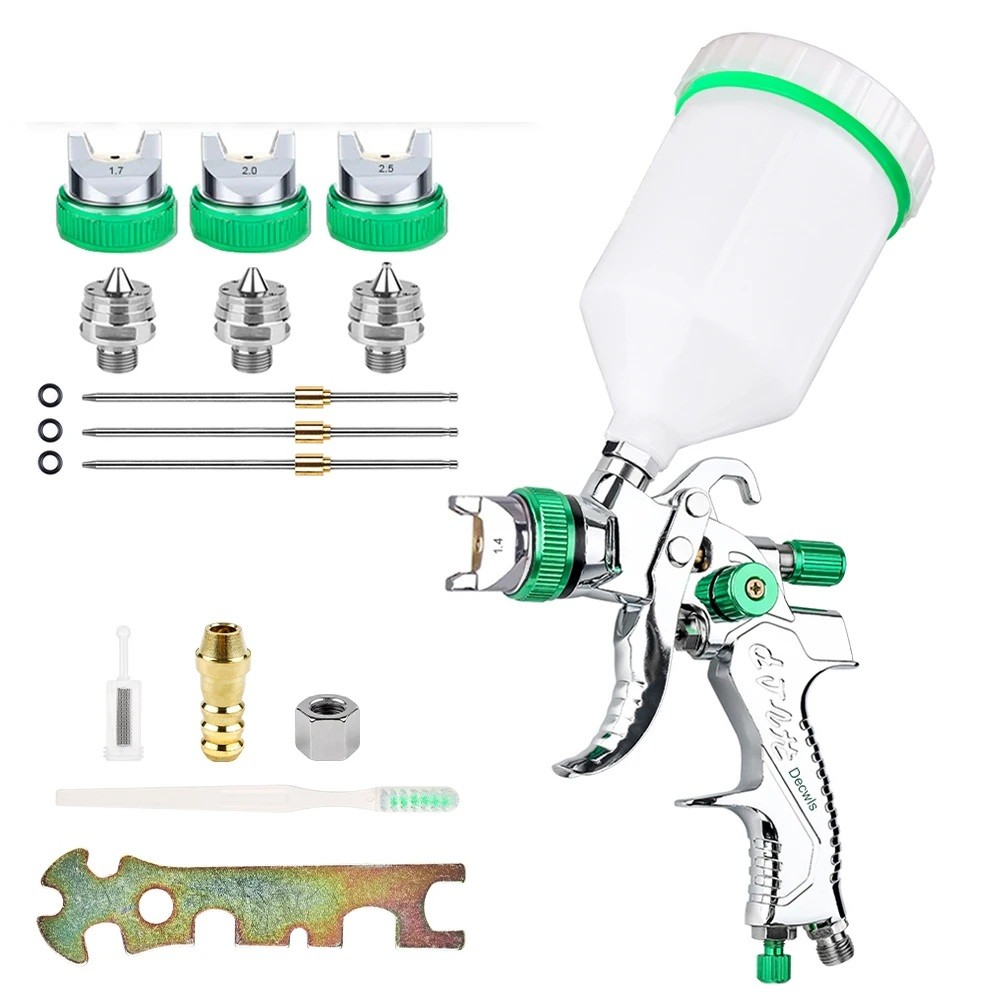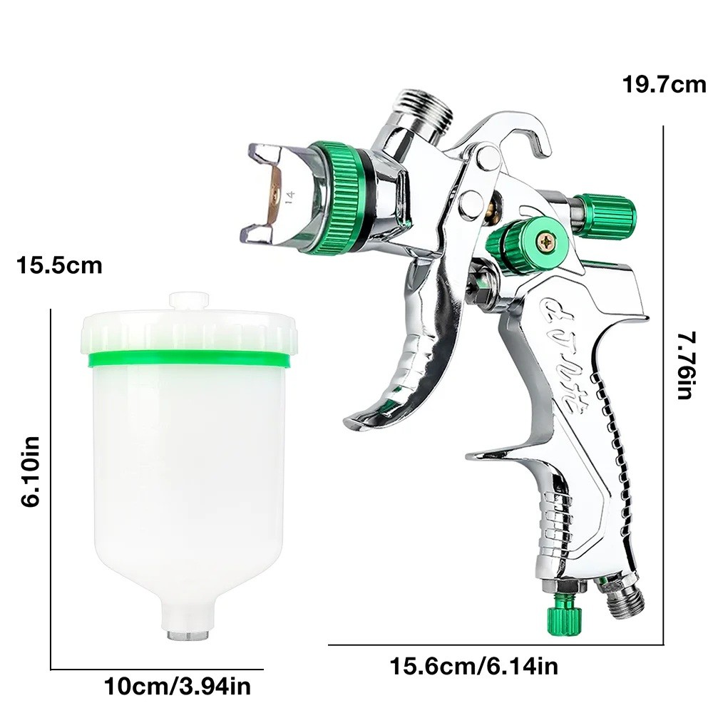 HVLP stříkací pistole na lakování 600 cc 15,6x19,7 cm hliníková stříbrno zelená s tryskami 1,4 1,7 2,0 2,5 mm