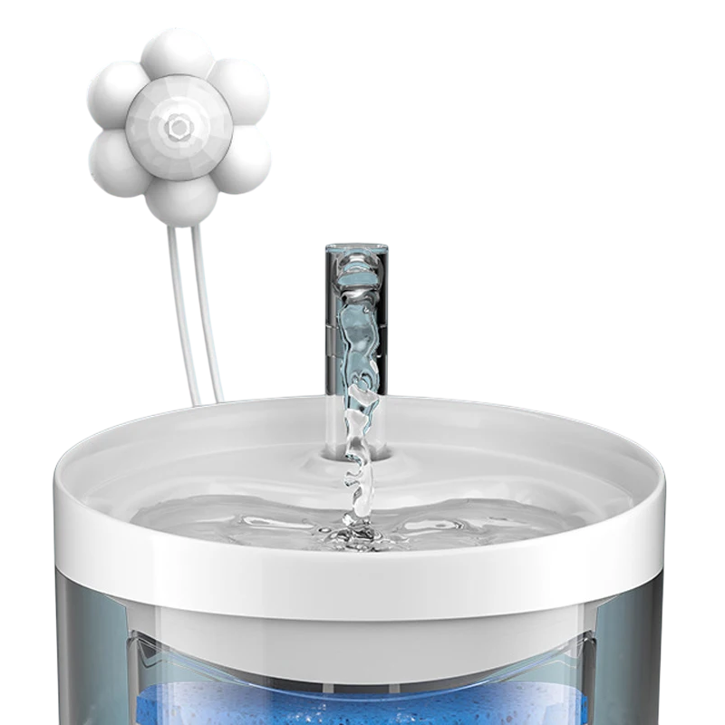 Citlivý infračervený senzor pohybu ve tvaru květu pro automatický dávkovač vody pro kočky s USB konektory a úhlem detekce 180°. Celý popis