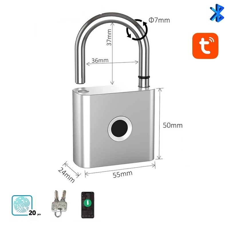 Praktický inteligentní visací zámek nabízí kombinaci moderních technologií a klasického zabezpečení. Díky čtečce otisků prstů umožňuje rychlé odemykání bez nutnosti použití klíče, zároveň ale ponechává možnost klasického odemčení. Připojení přes Bluetooth a ovládání pomocí aplikace Tuya rozšiřují možnosti správy přístupu přímo z mobilního telefonu. Kompaktní konstrukce je vhodná pro každodenní použití. Nabíjení pomocí USB-C portu zajišťuje snadnou obsluhu.