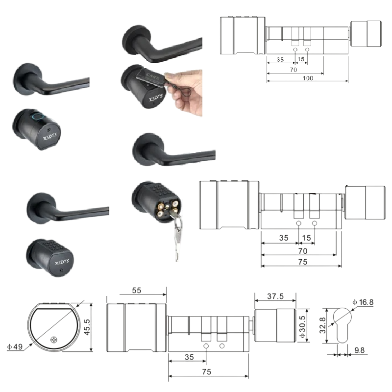 Inteligentní cylindrický zámek dveří přináší moderní způsob zabezpečení s důrazem na jednoduché ovládání a variabilitu přístupu. Kombinuje několik metod odemykání, díky kterým lze zámek přizpůsobit různým situacím i uživatelům. Ovládání pomocí mobilní aplikace přes Bluetooth umožňuje pohodlnou správu přístupů bez nutnosti použití klasického klíče.